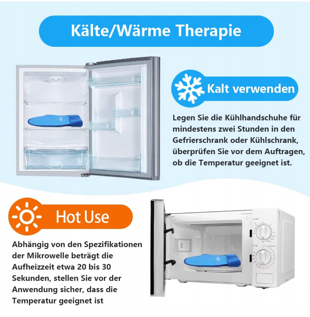 Włóż rękawice do zamrażarki lub lodówki na minimum 2 godziny – idealne do schładzania po zabiegach, przy obrzękach, stanach zapalnych czy bólu.