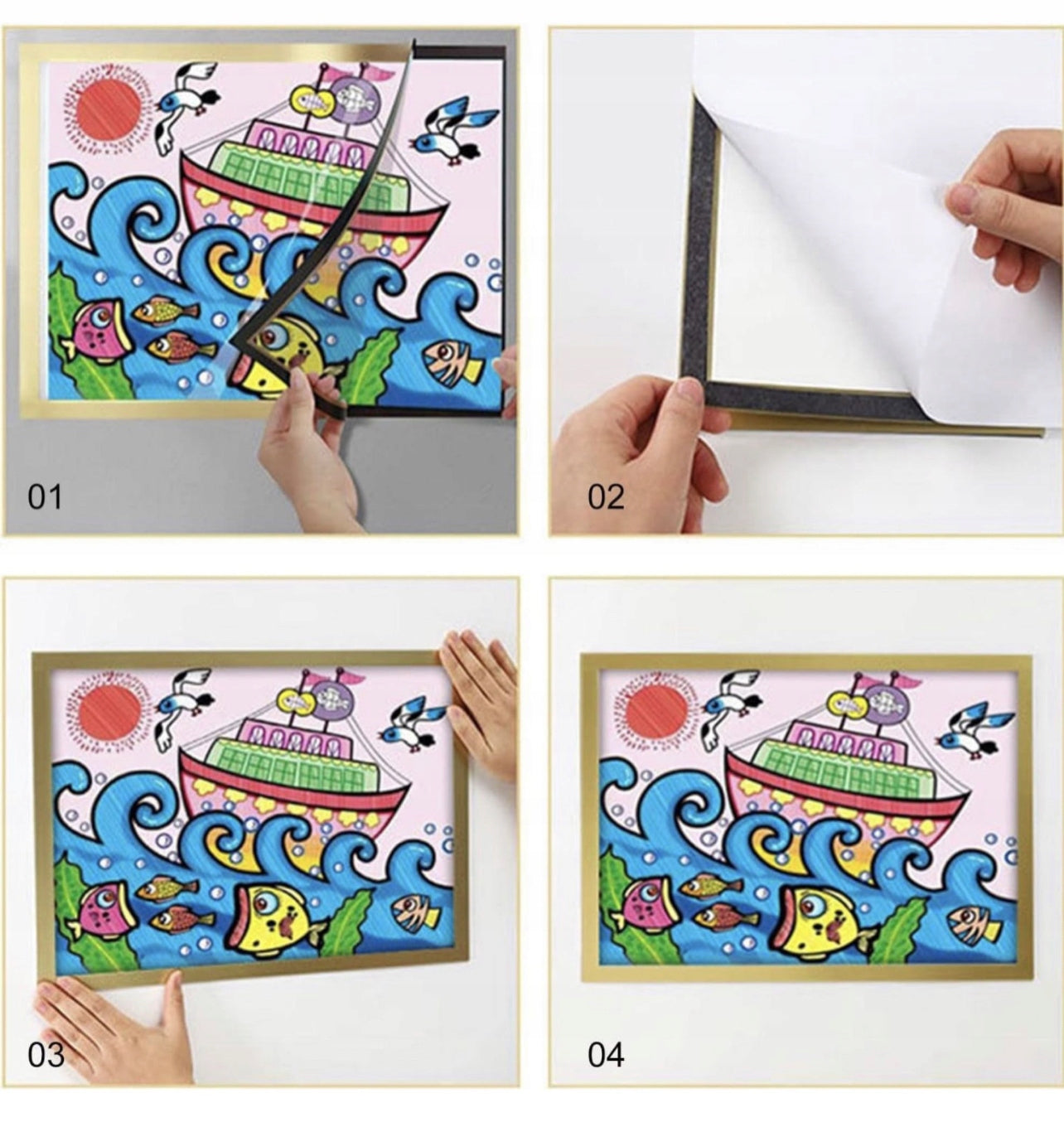 Ramki posiadają magnetyczną powierzchnię, która utrzymuje zdjęcie na miejscu bez konieczności stosowania kleju czy klipsów.