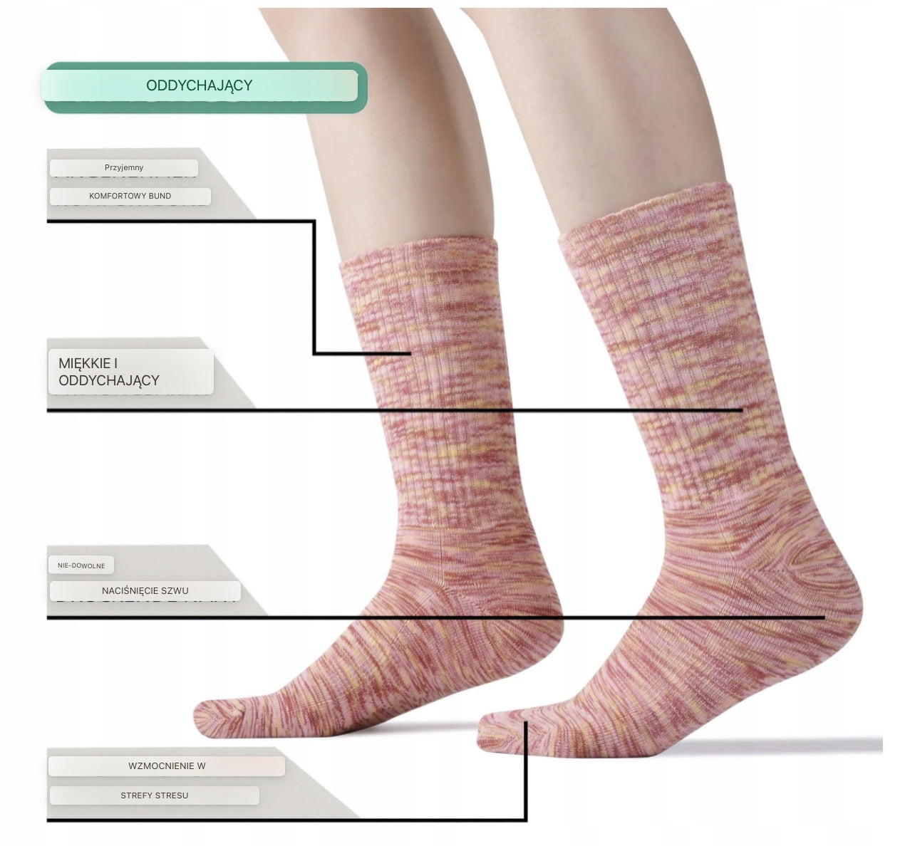Te skarpety są idealne na codzienne noszenie, zarówno do pracy, jak i na bardziej aktywne zajęcia. Bez względu na to, czy stoisz w biurze, czy biegasz po parku, te skarpety dostarczą Ci nie tylko komfortu, ale także stylowego akcentu.