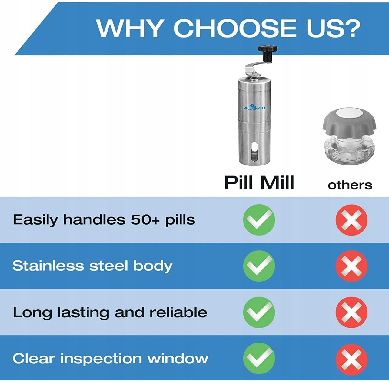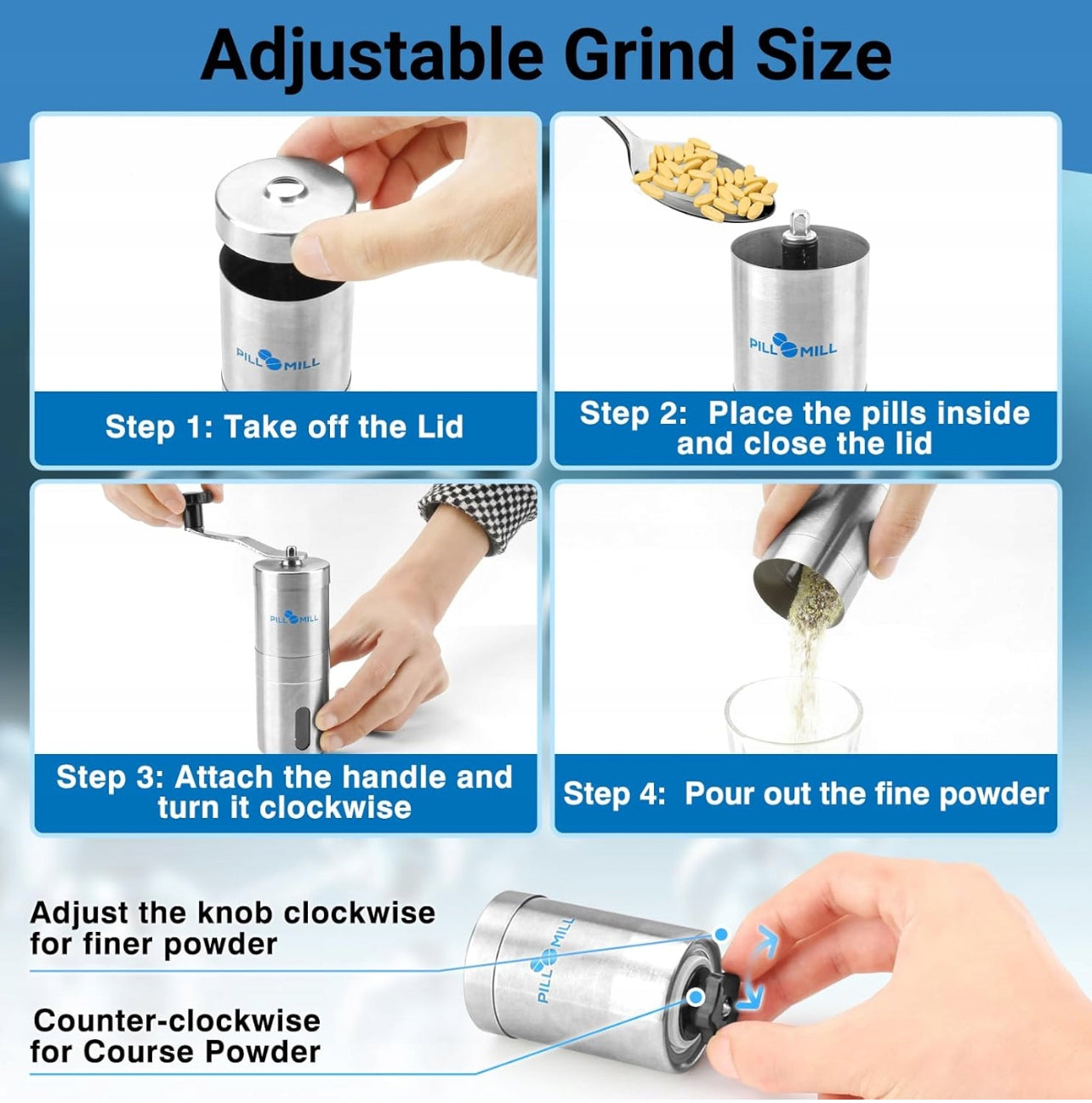 ✅ Bez wysiłku i bezpiecznie – ergonomiczna korbka pozwala rozdrobnić tabletki bez użycia siły – idealne dla osób starszych i osób z ograniczoną sprawnością rąk.
