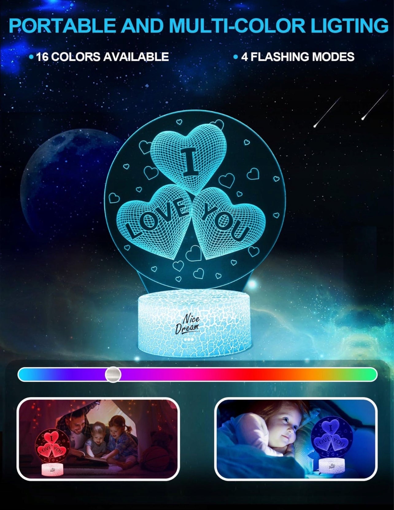 Nocna lampa LED 3D – serce „I LOVE YOU”
