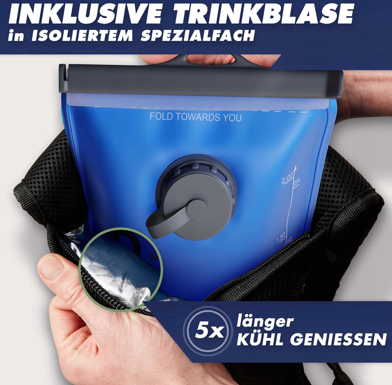 Plecak wyposażony jest w wkład o pojemności 2 litrów na wodę, zintegrowany z systemem nawadniania, co ułatwia nawadnianie w trakcie aktywności fizycznej.