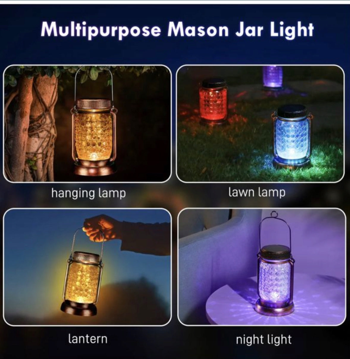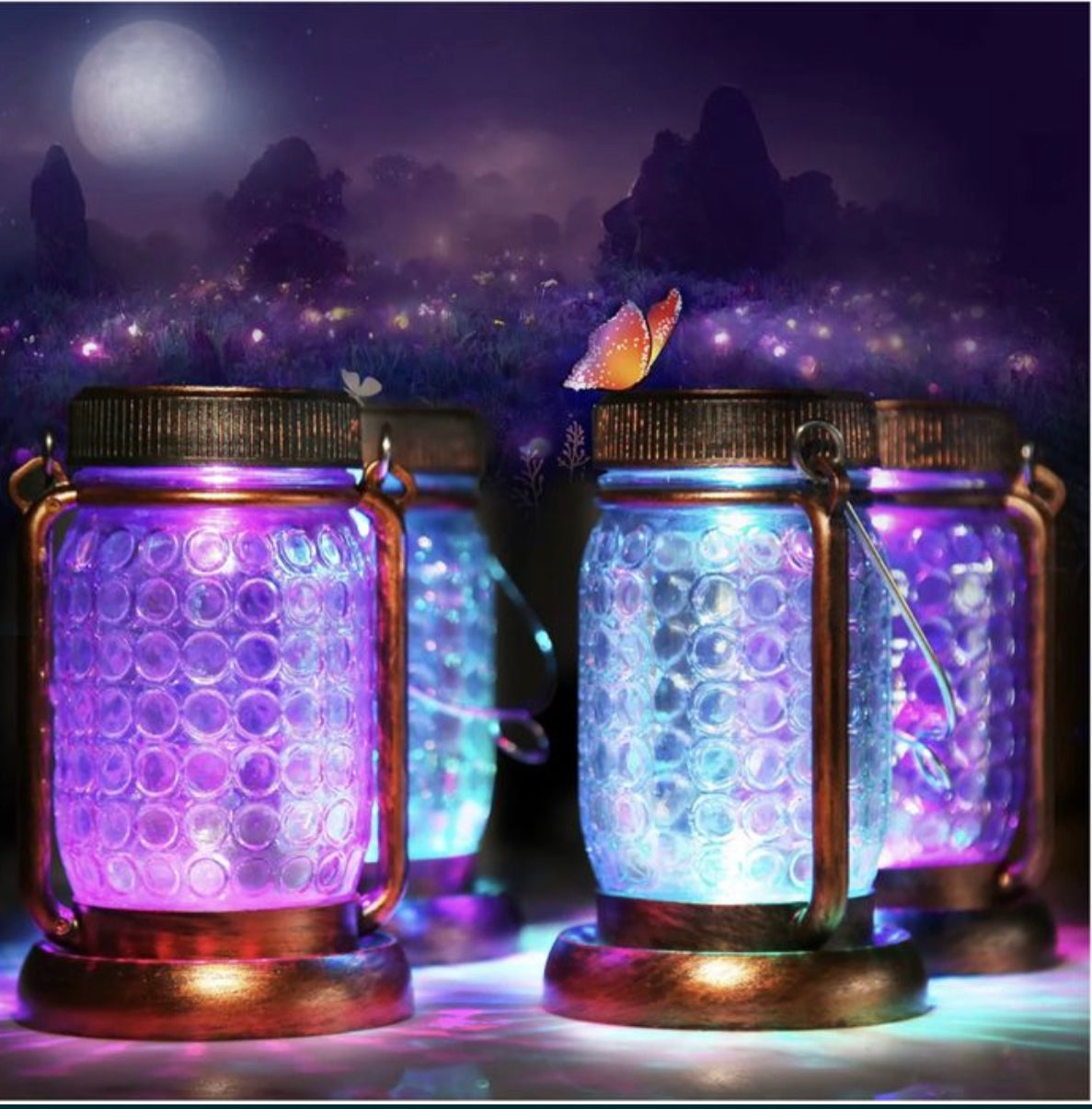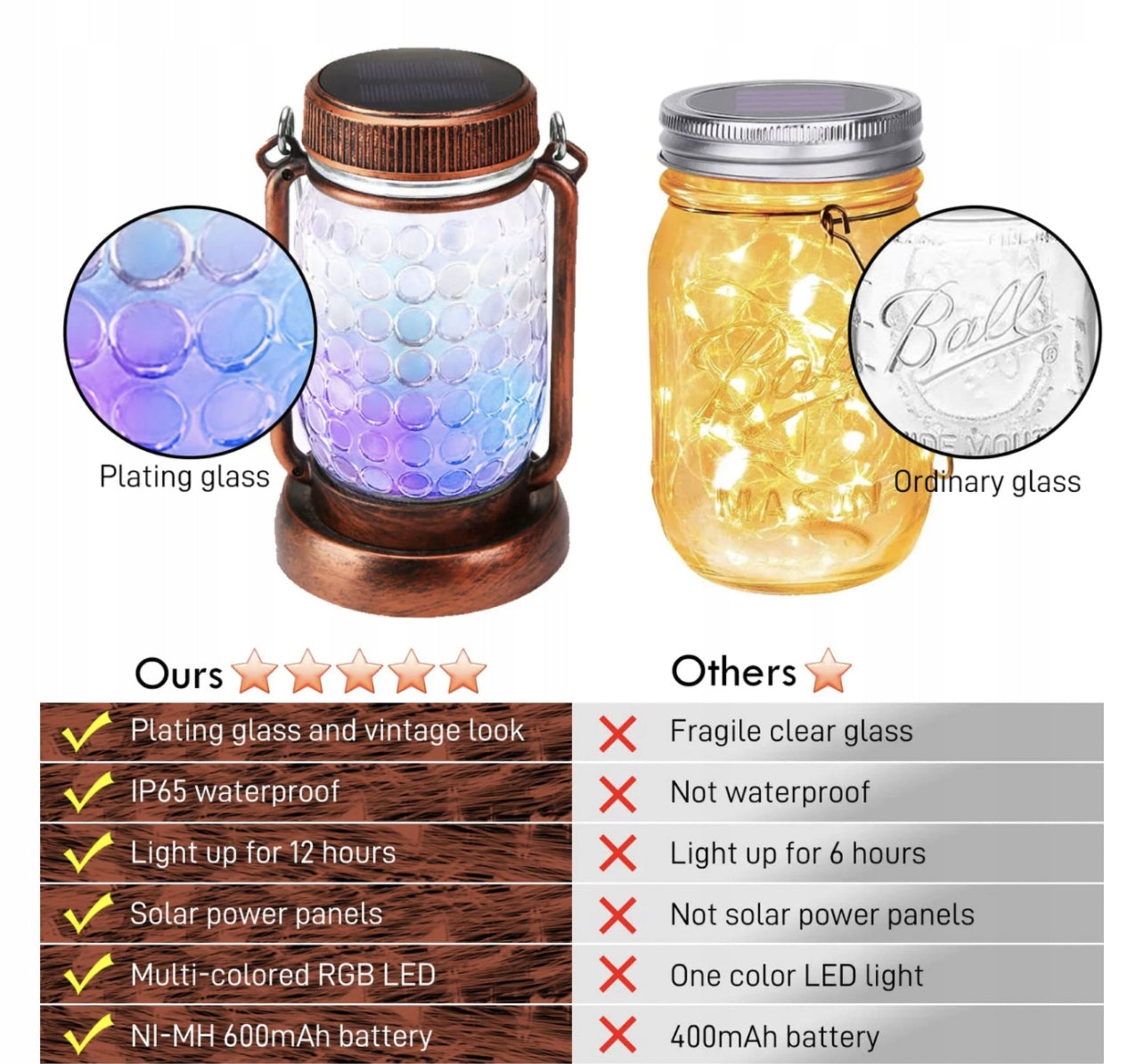 homdat zewnętrzna lampa solarna, zestaw 4 zewnętrznych latarni solarnych, solarny słoik z 7 światłami RGB, IP65 wodoodporny, podwórka, ogrody, oświetlenie trawników